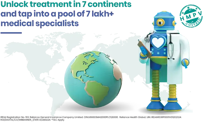 International Health Insurance acts as your global financial shield that covers medical treatments across countries worldwide. It helps you pay for the exorbitant hospitalisation expenses overseas to recover sooner and better.Reliance General Insurance offers Global Health Insurance Coverage (Global Cover) for planned medical treatments and both planned and emergency healthcare under Global + India cover.We cover a wide range of illnesses, including critical illnesses, with access to top-quality healthcare services worldwide.